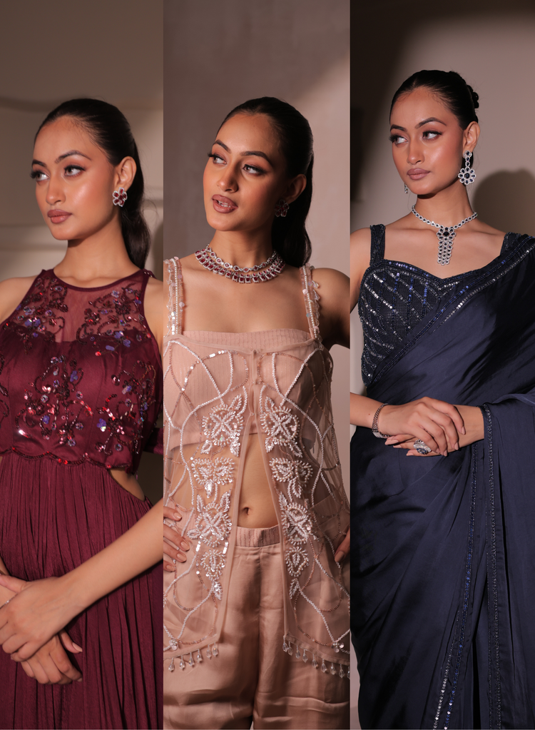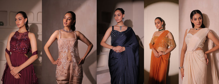 Black Sequin Embellished Pre-Draped Saree with Sequin Fabric Detailing | Ready-to-Wear Cocktail Saree